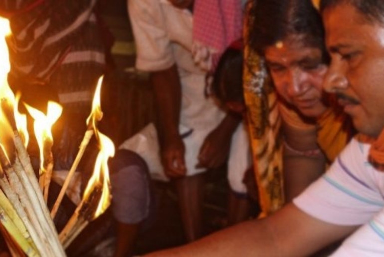 Families raise their burning jute sticks and recite the age-old invocation: “Bada badua ho, andhaara re aasa, alua re jaa,”